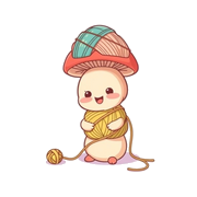 Decorate your space with charm and humor! This funny art print features a mushroom's delightful yarn challenge.
